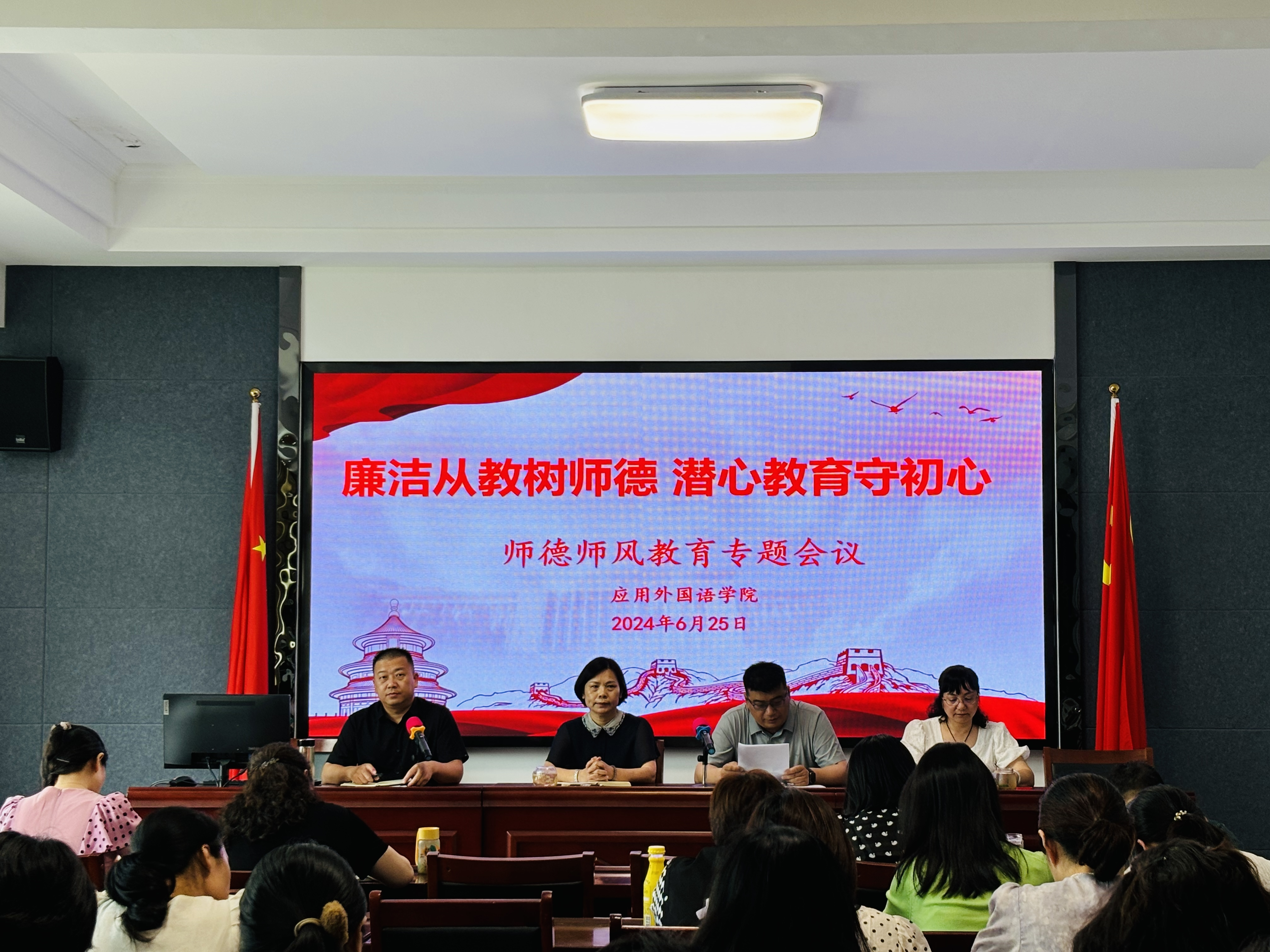 2024年6月25日下午,太阳成城集团tyc234cc在2402会议室召开了“廉洁从教树师德、潜心教育守初心”为主题的师德师风教育专题会议,太阳成城集团tyc234cc全体教师参加了会议。会议由太阳成城集团tyc234cc副书记张泽锋主持。