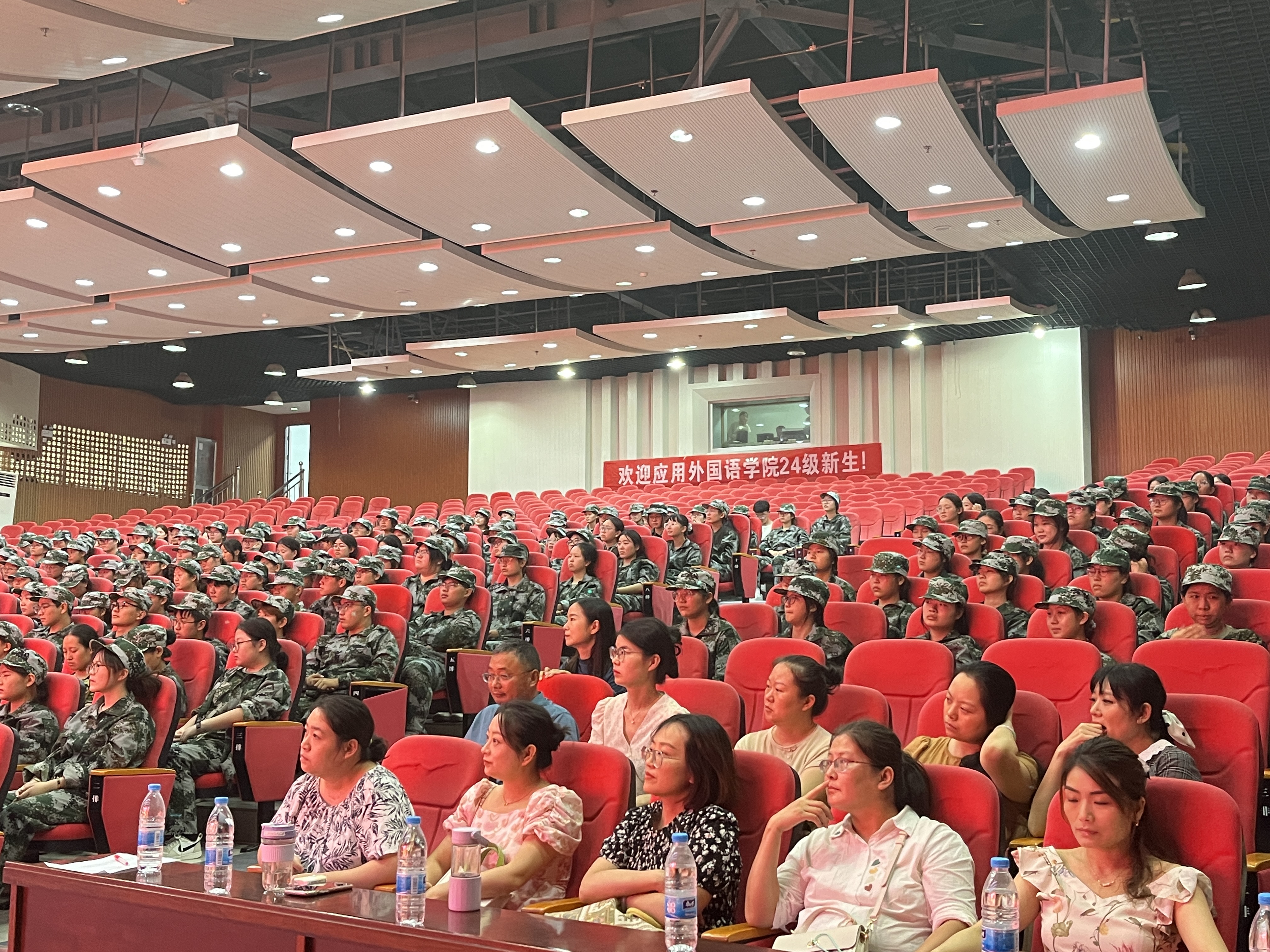 大会在雄壮的国歌声中拉开序幕,刘晓鹂发表了热情洋溢的致辞,她首先向全体教师致以节日的问候,并代表学院向2024级新生表示热烈的欢迎,随后,刘晓鹂介绍了外语学院的办学历史、师资队伍、学生就业等方面的优势和特色。最后,她深情寄语同学们:要树立远大理想,夯实专业知识,保持阳光自信的精神风貌,争做奋发有为的信职学子。