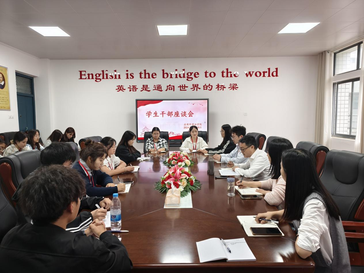会上,徐书记首先进行了开场致辞,表达了对学生干部的关心与期望,并强调了学生干部在学院管理及文化建设中的重要作用。随后,学生干部们积极发言,分享了各自在工作中的经验和遇到的困难,徐书记认真听取了每位学生干部的发言,并就相关问题进行了深入交流和探讨。最后,他向学生干部提出三点期望和要求:一、强化自我塑造,在成长发展上“出色”。以严格标准要求自己,杜绝官僚主义、抵制不良风气。作为学生干部,应当锤炼志气、涵养朝气、弘扬正气,强化自我塑造,在个人成长发展上力争出色。二、坚持原则担当,在实干作为上“出众”。坚守原则,始终坚持为同学服务,积极为同学排忧解难。要勇于担当,积极作为,树立榜样,在实干作为上出众。三、紧扣外语特色,在活动策划上“出彩”。学生干部要积极融入学院发展大局,扎根外语学院文化底蕴,把握学院外语优势,在学院专业特色、创新创业、社团活动等方面探索更多实践活动的新路径。