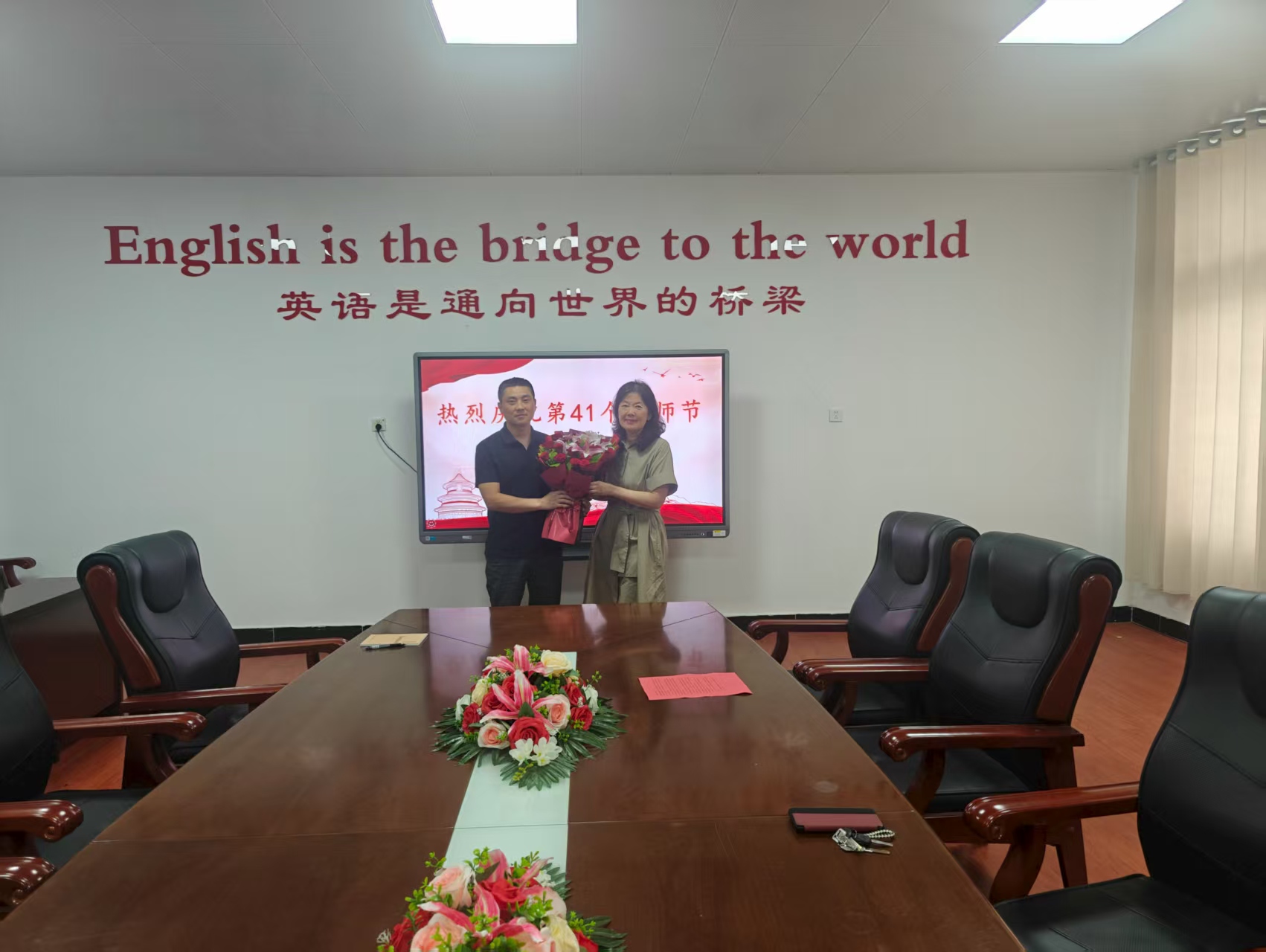 蒋有红首先向优秀教师代表李志丹教授送上了鲜花,充分肯定教师们在教育教学第一线取得的成绩,感谢他们付出的辛勤汗水和做出的无私奉献。强调教师是“立教之本、兴教之源”,勉励大家坚守立德树人初心,持续提升教学能力,当好学生成长的引路人,为学校高质量发展贡献智慧力量。随后,听取学院发展需求与困难,要求相关部门强化教师服务保障,营造尊师重教良好生态,让教师安心从教、热心从教。最后,学院党总支书记徐昊做了表态发言。