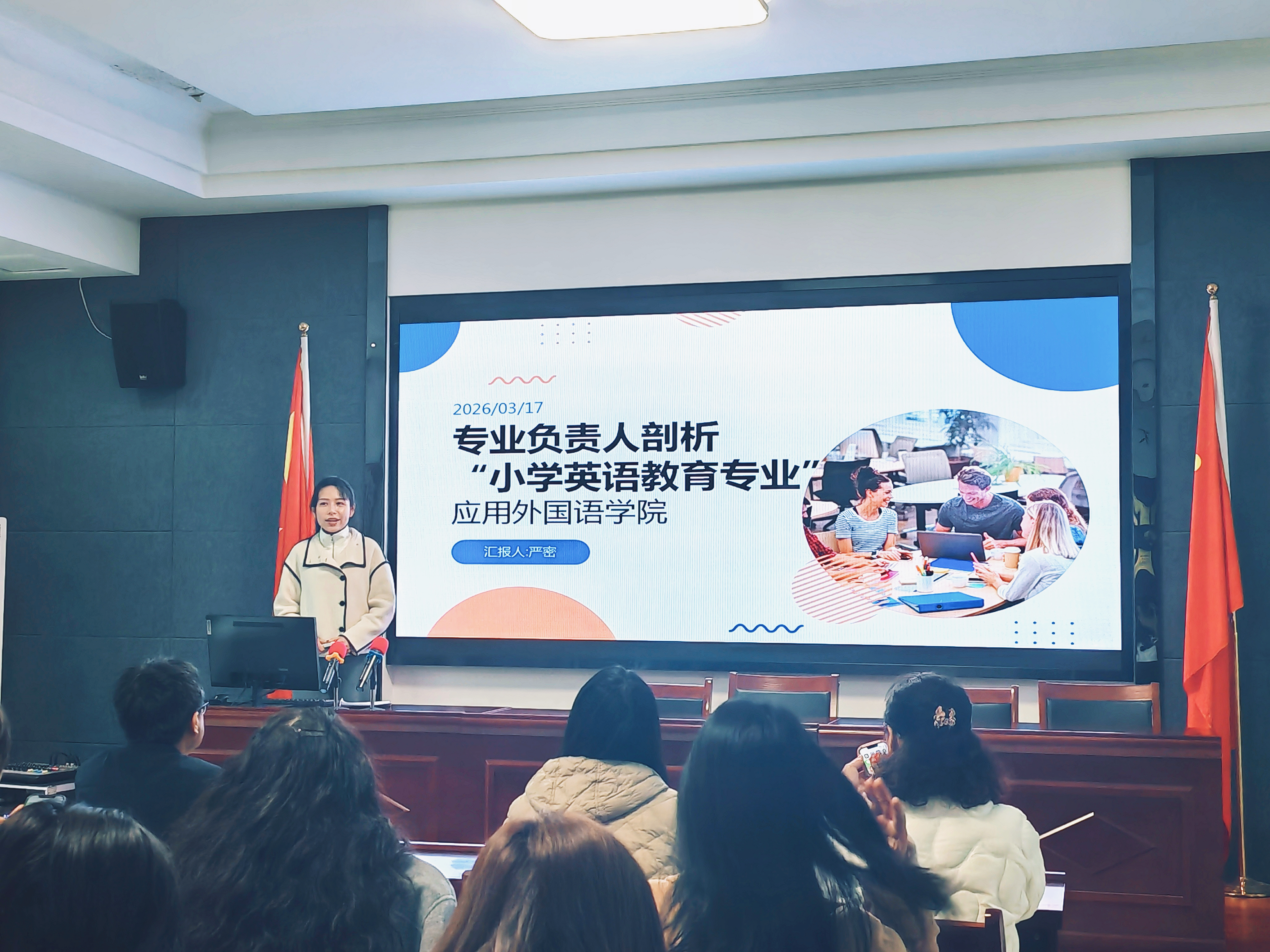 本次活动组织有序,环节紧凑,共分为两个阶段进行。第一阶段为“说专业”汇报。学院两个专业的负责人依次登台,围绕专业定位与岗位对接、人才培养方案优化、师资队伍建设、实习实训与校企合作深化以及建设成效与未来规划等核心议题,进行了全面系统的梳理和深入透彻的剖析。汇报中,各专业既分享了在特色凝练、模式创新等方面取得的宝贵经验,也勇于直面发展过程中遇到的痛点与难点,并结合行业发展的最新动态和岗位实际需求,提出了具有针对性的改进思路与发展策略,充分展现了专业建设与产业需求同频共振、同向发力,主动适应区域经济社会发展需要的清晰理念。