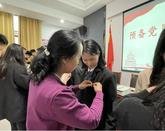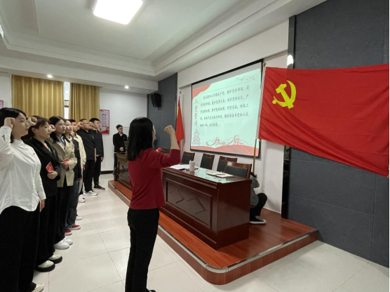 会上,党员发展对象分别汇报了自己的基本情况、党史学习情况和抗疫期间的表现,以及需要向党组织说明的其它问题。然后,入党介绍人介绍对发展对象的培养教育情况,并对其能否入党表明意见。接着,与会学工支部党员对发展对象能否入党展开充分讨论,并进行了无记名投票。大会一致同意接收何心灵等13名发展对象为预备党员。全体党员教师为新党员们佩戴上党员徽章。徐晓双带领下全体新党员们面对鲜红的党旗进行了庄严的入党宣誓。何心灵、孙春燕分别作为预备党员和入党积极分子代表进行发言。