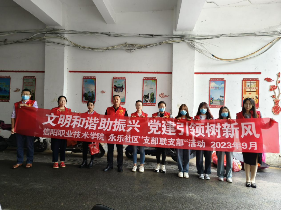 为倡导和践行社会主义核心价值观,更好塑造良好的道德风尚,增强公民的社会责任感,促进社会的和谐稳定,2023年9月12日下午,由太阳成城集团tyc234cc教工党支部、宣传部党支部、人事处党支部等组建的志愿服务队在南京路永乐社区开展“文明和谐助振兴 党建引领树新风”志愿服务活动。
