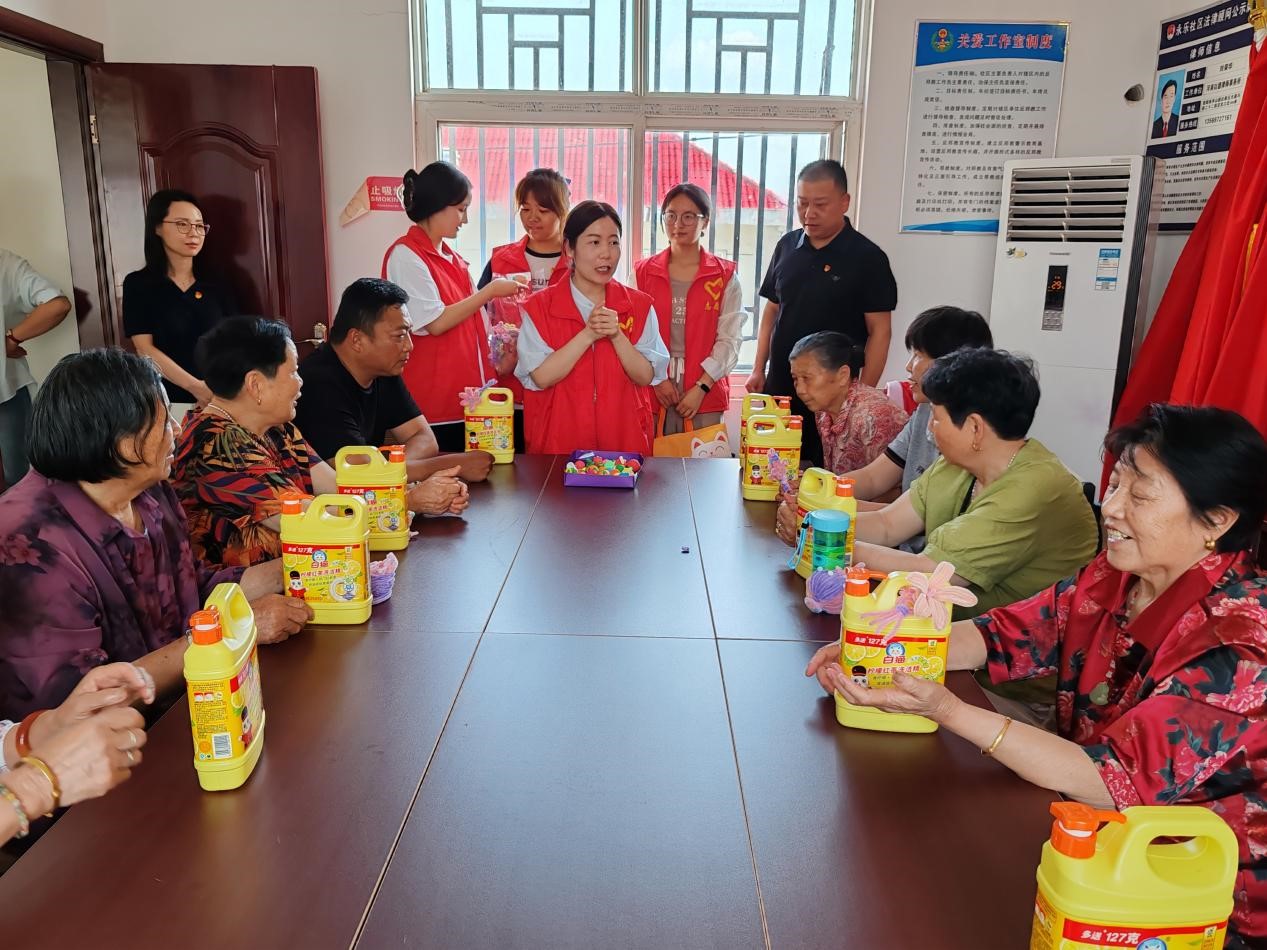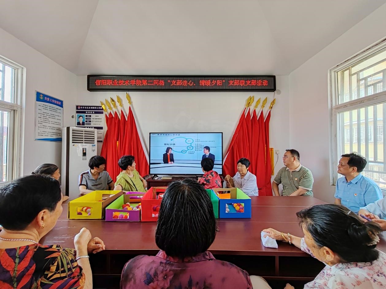 2025年6月13日,太阳成城集团tyc234cc党总支牵头,联合人事处、宣传部等党支部的师生代表在信阳市永乐社区开展了“支部连心 情暖夕阳”老年心理健康主题活动,为社区老人送上关怀与温暖。