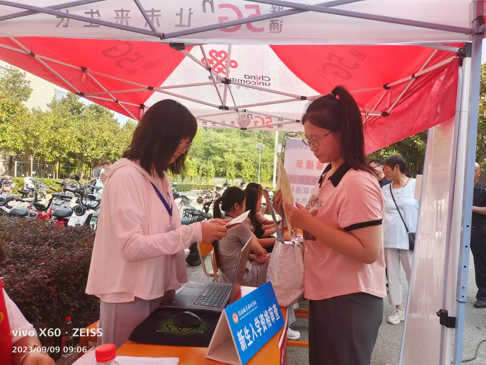 一是落实入学报到材料复审。9月9日,我院2023级新生集中报到,为落实学校安全、便捷的迎新工作要求,学院在宿舍楼外设立接待点,核查新生身份证、录取通知书、准考证、高考档案等材料,通过核查后为其办理入学手续。当天各班辅导员逐一核查考生的身份证、准考证、录取通知书等材料并比对照片,同时,收缴新生档案,以防重要材料丢失。