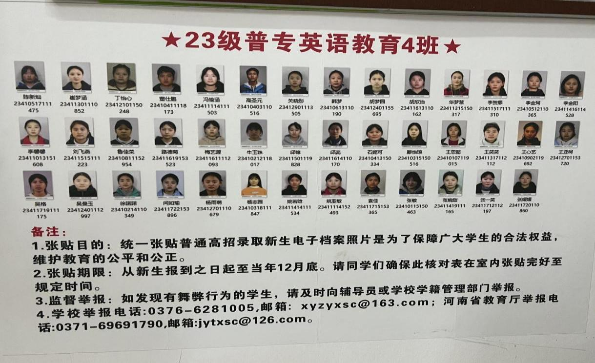 二是在教室和宿舍分别张贴新生照片,并公布入学资格复查监督举报电话,接受学生监督。