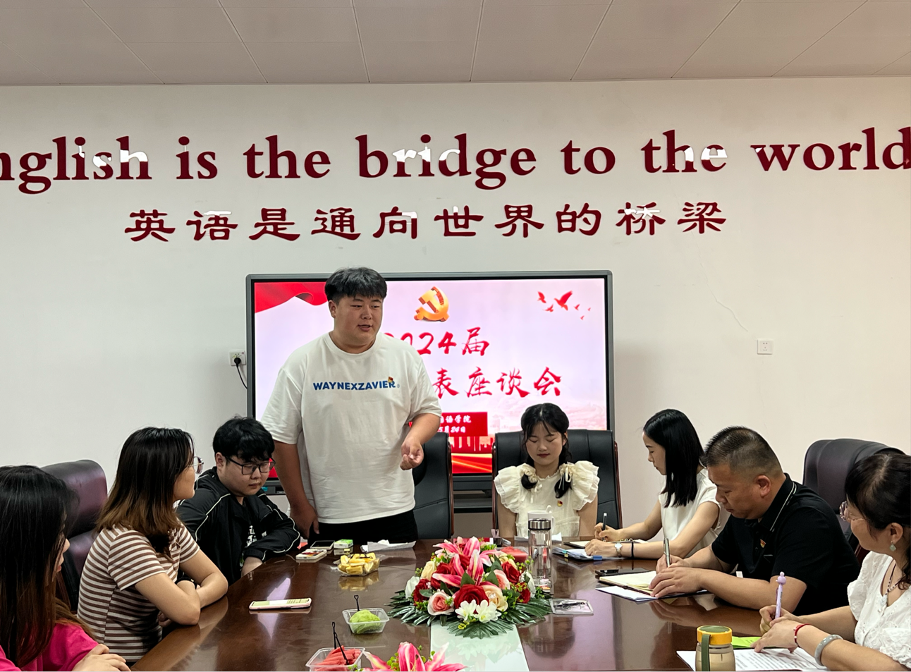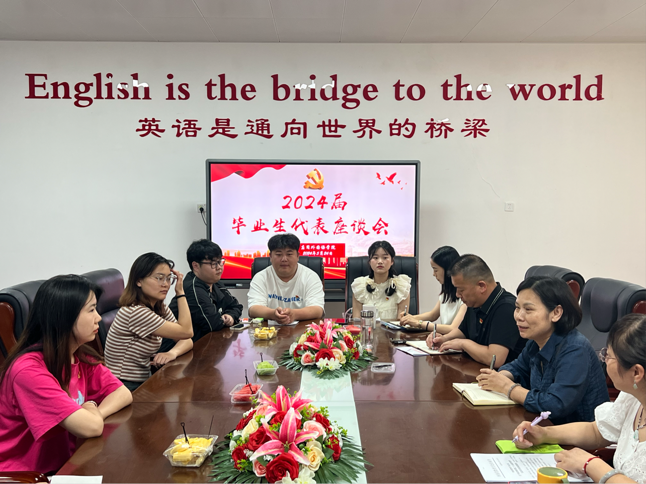 为了充分了解毕业生对学院教学和管理等各项工作的意见建议,促进学院高质量发展,太阳成城集团tyc234cc于2024年5月24日举行“2024届毕业生代表座谈会”,太阳成城集团tyc234cc院长刘晓鹂、副院长刘文敏、学工办主任徐晓双及各班毕业生代表参加,会议由学院党支部副书记张泽锋主持。