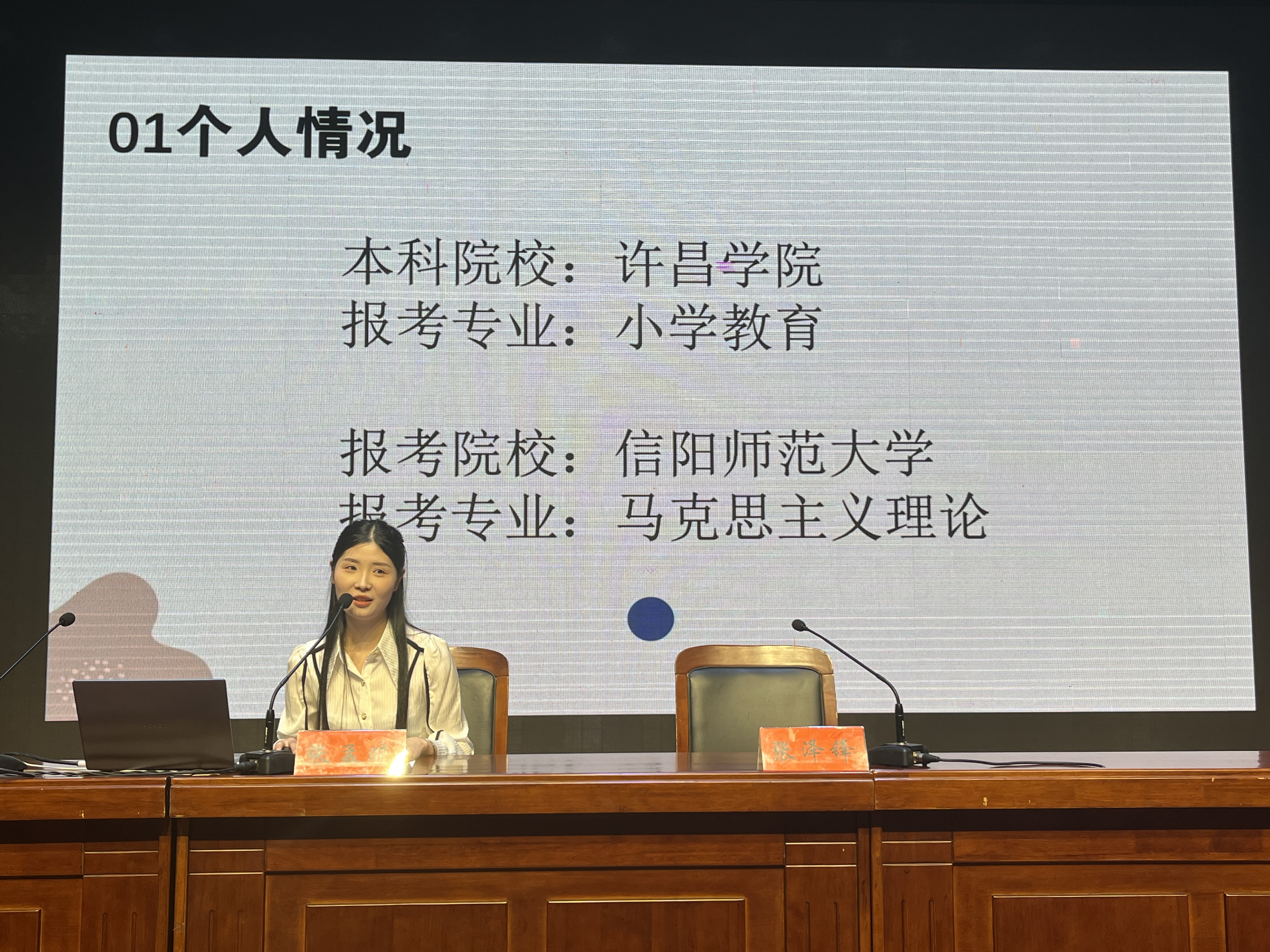 会议伊始,张泽锋介绍张孟晓是中共党员,在校期间曾获得“优秀教学信息员”、“校级十佳青年”、“校级三好学生”、“校级优秀实习生”、“河南省三好学生”、"河南省优秀毕业生”等荣誉,是同学们中的佼佼者。接着,张孟晓从“梦想-奋斗-圆梦”三方面详细讲述自己成功升本和考研的难忘经历,并分享自己的备考方法和宝贵的学习经验。她表示,提升个人学历是完全必要的,但成功并非偶然,只有不断努力,才能抓住机遇,实现梦想。然后,与会同学踊跃提出关于学习和本科专业选择等方面的问题,张孟晓一一细心解答。