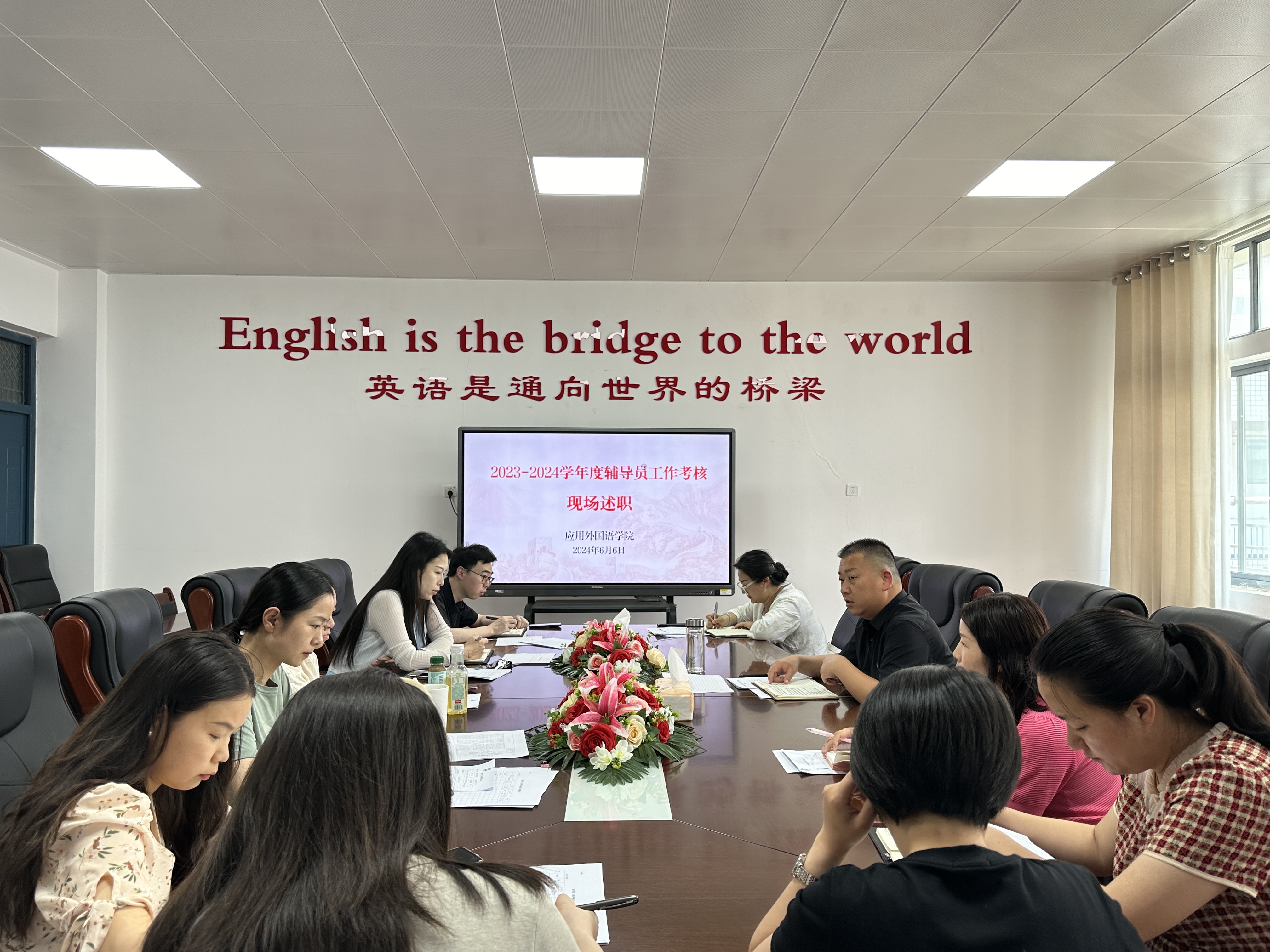 为进一步加强专兼职辅导员队伍建设和管理,检验辅导员履行岗位职责、完成工作情况,全面考核辅导员的德、能、勤、绩,学院于2024年6月6日举行了专兼职辅导员年度工作现场述职会,学院考评工作小组及全体专兼职辅导员参加,会议由副书记张泽锋主持。
