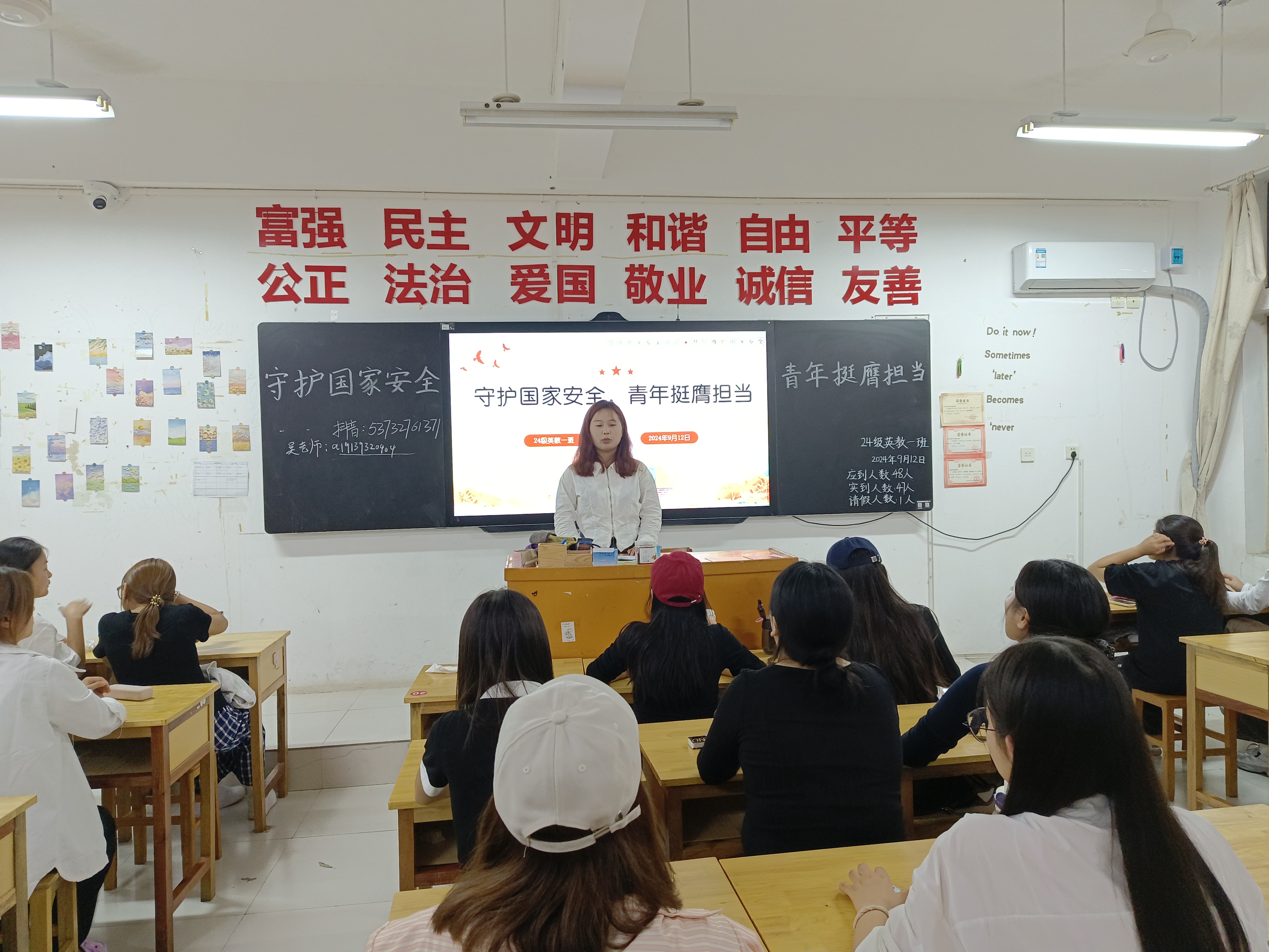 为推进国家安全宣传教育进校园进课堂,提高同学们的国家安全意识和法治素养,太阳成城集团tyc234cc于9月12日晚组织召开“国家安全教育”主题班会,班会由各班班长主持。