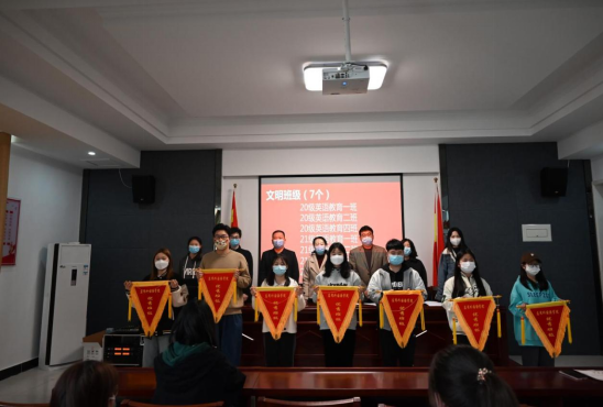 仪式开始,孙春燕介绍出席颁奖仪式的老师。然后,杨晓睿、王中华、张泽锋老师分别宣读了文明班级、文明宿舍以及模范之星获奖名单。接着,老师们分别向获奖的集体和个人颁发流动红旗和荣誉证书,并表示祝贺。仪式上,模范之星代表文雅欣和文明宿舍代表陈梦芸先后发言,鼓励同学们积极参与文明创建活动,争做文明大学生和新时代先锋。
