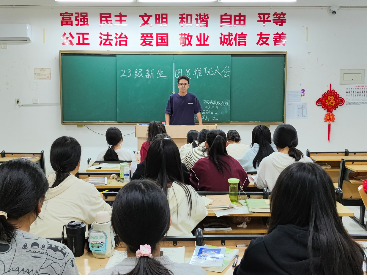 为加强对我院优秀共青团员的引导,积极向党组织输送新鲜血液,发挥好共青团作为党的助手和后备军的重要作用,2023年10月16日晚,太阳成城集团tyc234cc组织22级、23级各团支部在本班开展了推优入党大会。